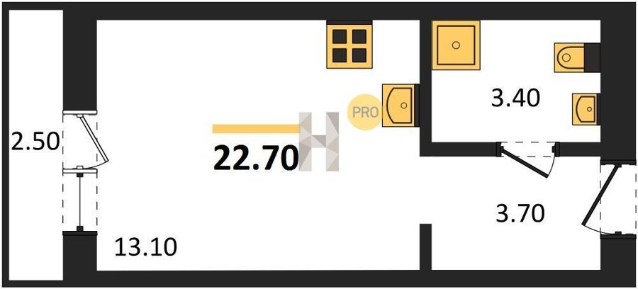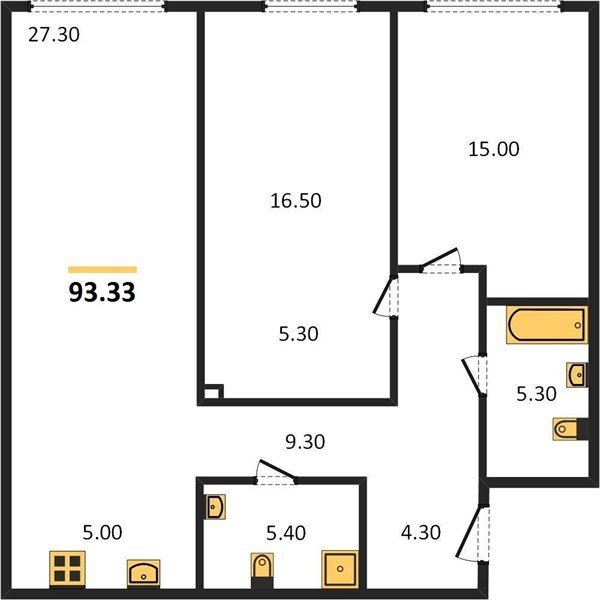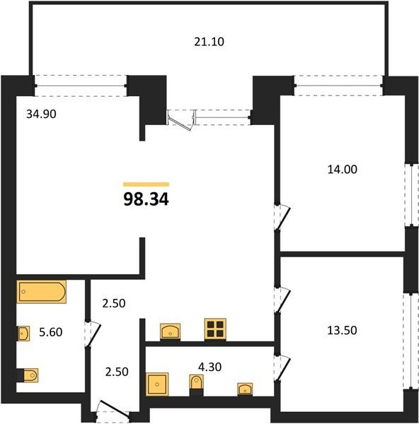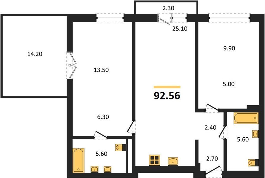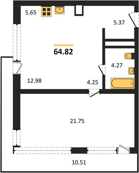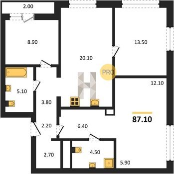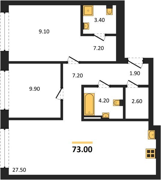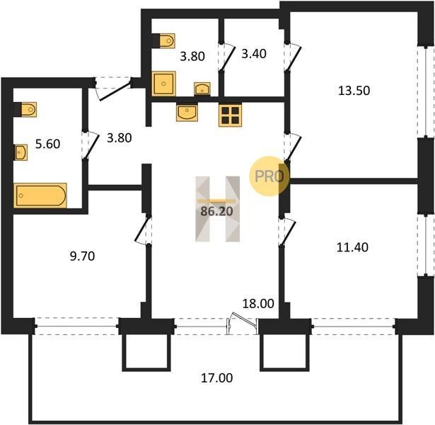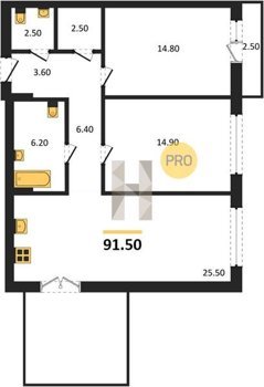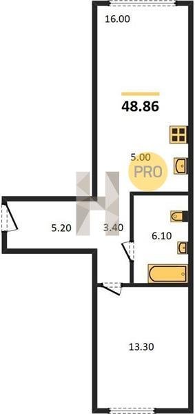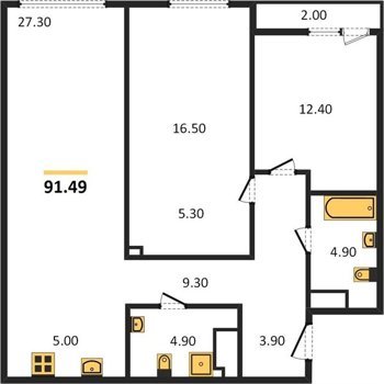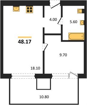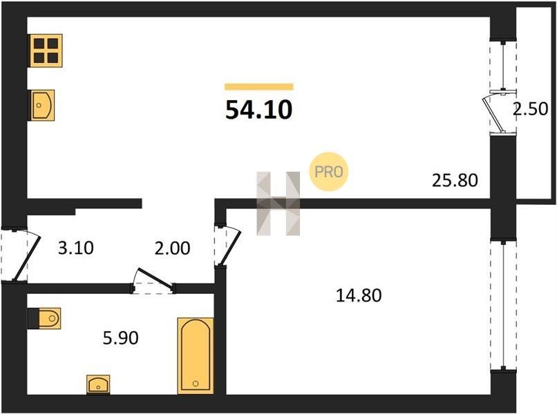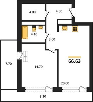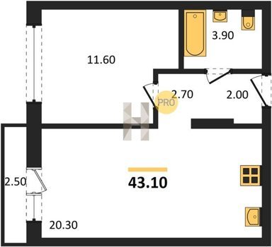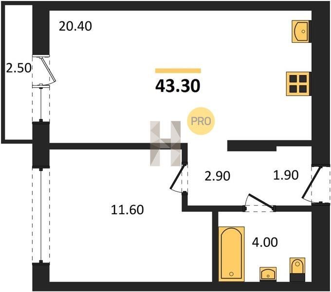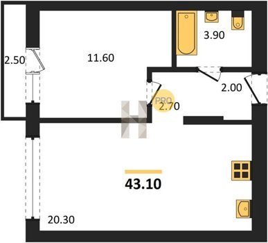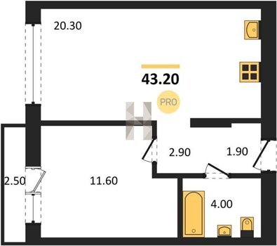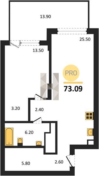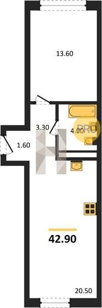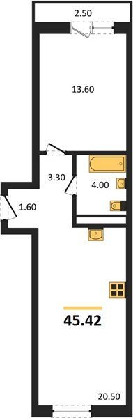 Площадь от 42.5 м2