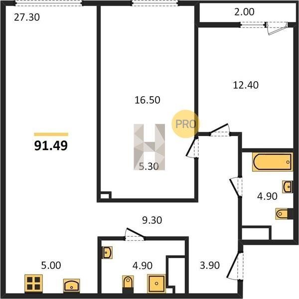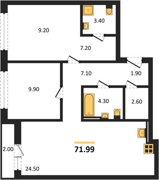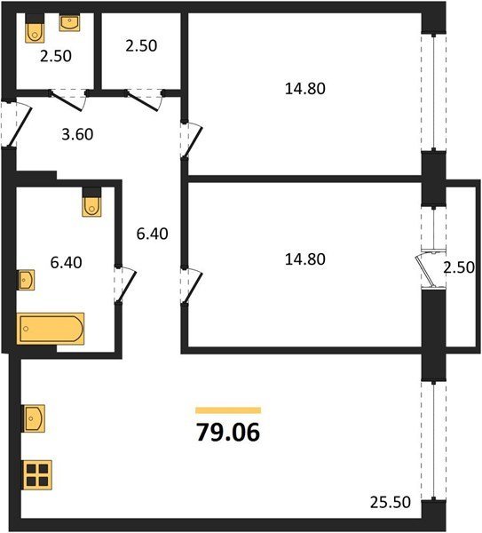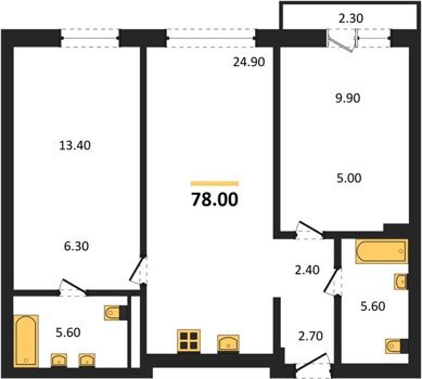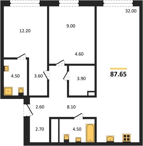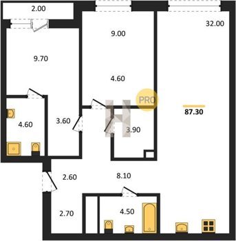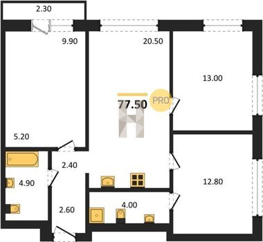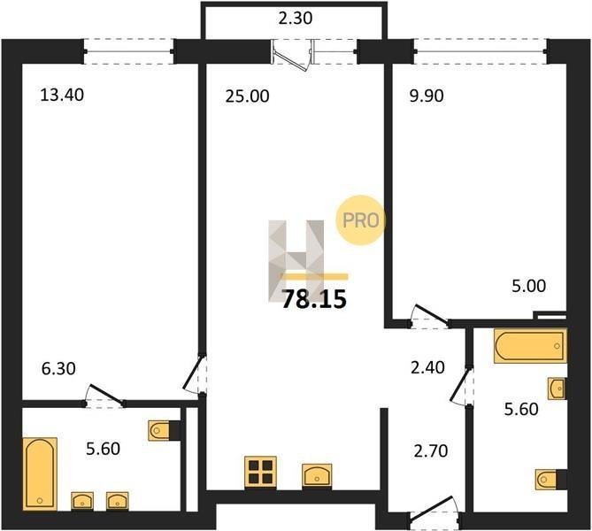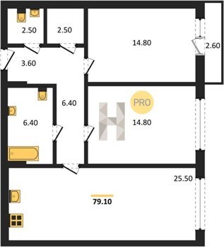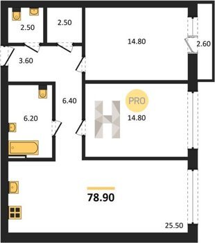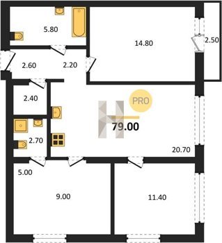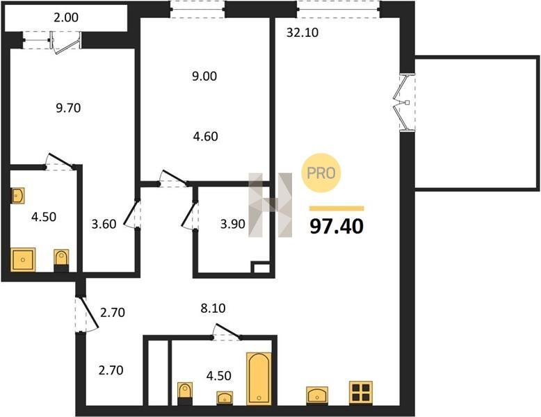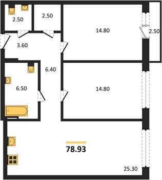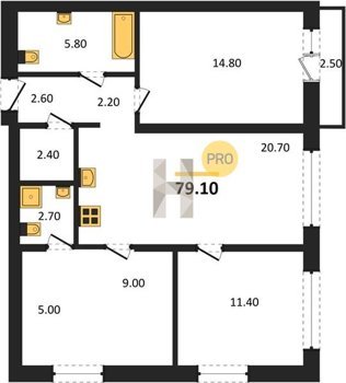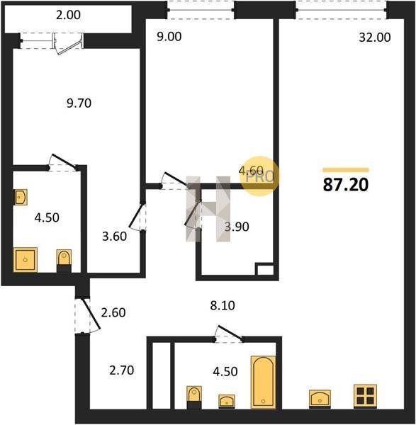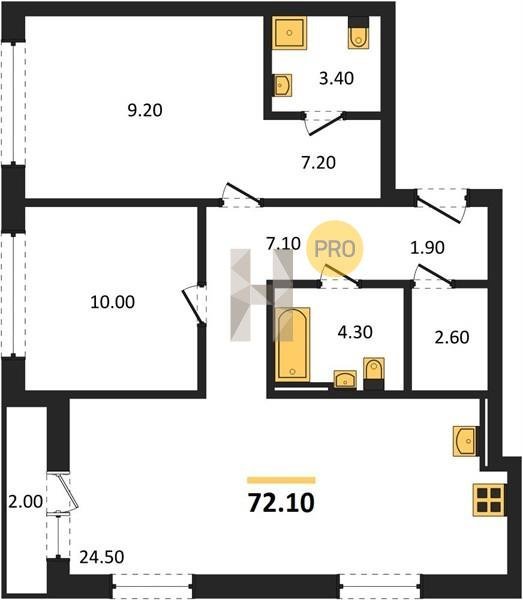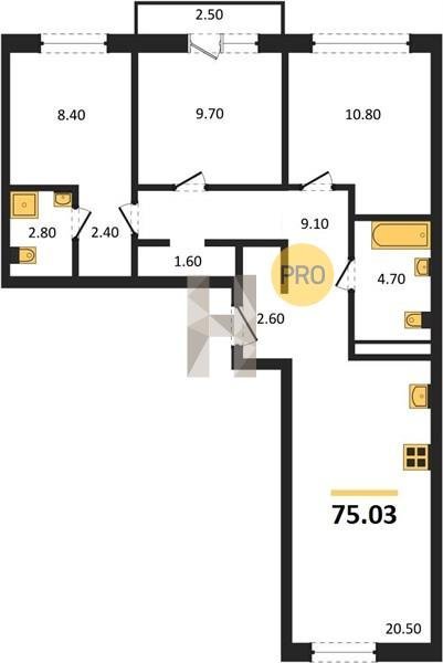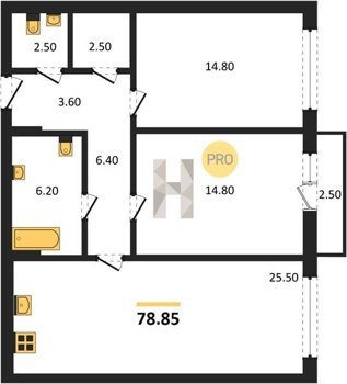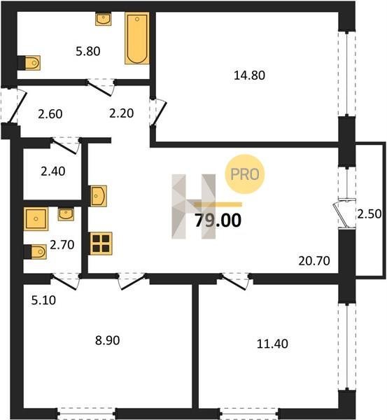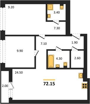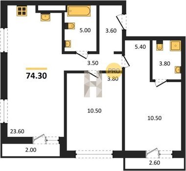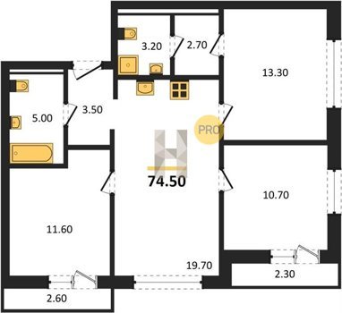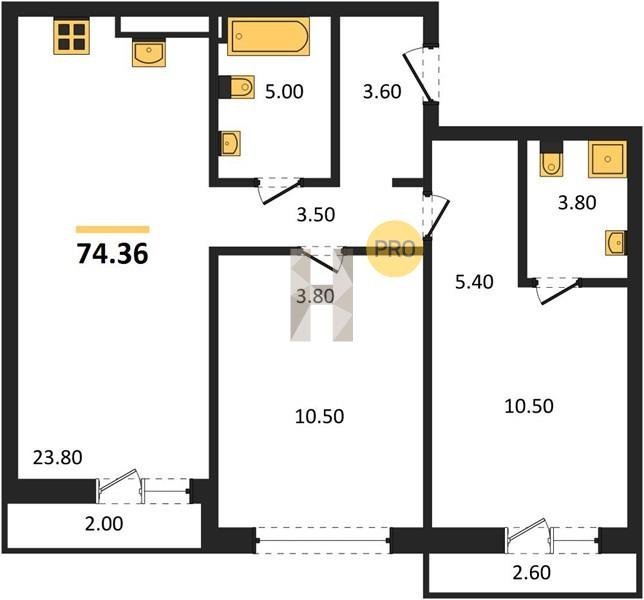 Площадь от 74.5 м2