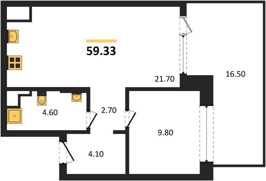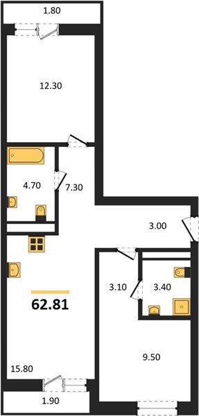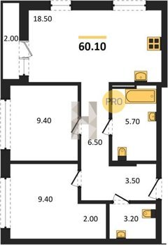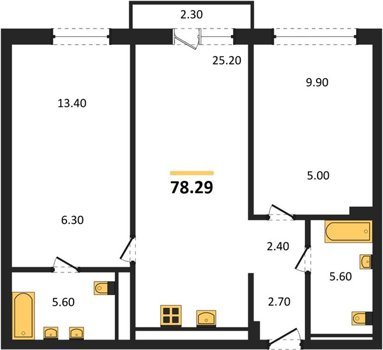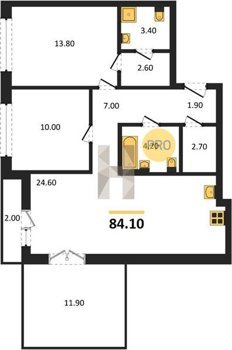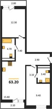 Площадь от 58.4 м2