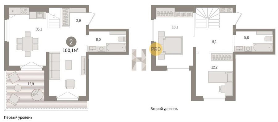 Площадь от 120.1 м2