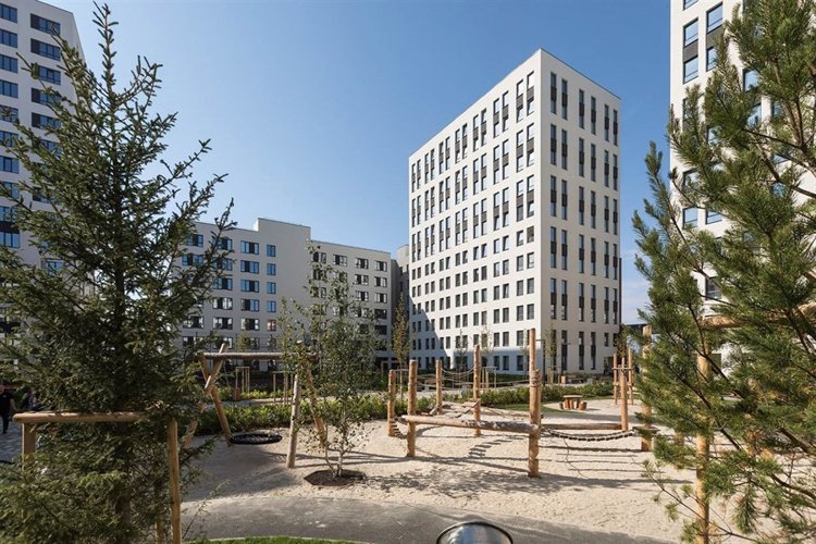 Сформированная инфраструктура локации — школы, детские сады, магазины, спортивный стадион — делают жизнь в квартале комфортной. Квартал состоит из 11 домов. В центре квартала расположены 6-8-этажные урбан-виллы и 9-этажные парные дома с общим холлом. По периметру они отделены от городских улиц двумя секционными домами от 6 до 18 этажей со стилобатом и паркингом. Переменная высотность зданий делает дворы и квартиры светлыми. Ступенчатая композиция придаёт застройке человеческий масштаб. Расположенная рядом школа будет интегрирована в проект при помощи элементов благоустройства и общественных пространств. На территории квартала расположен спортивный комплекс с открытым амфитеатром. Первую очередь образуют четыре секции. Две из них представлены домами от 6 до 18 этажей, две — отдельно стоящими урбан-виллами. Здания расположены на стилобате, который устроен как зелёный внутренний двор. Под ним находится подземный паркинг.