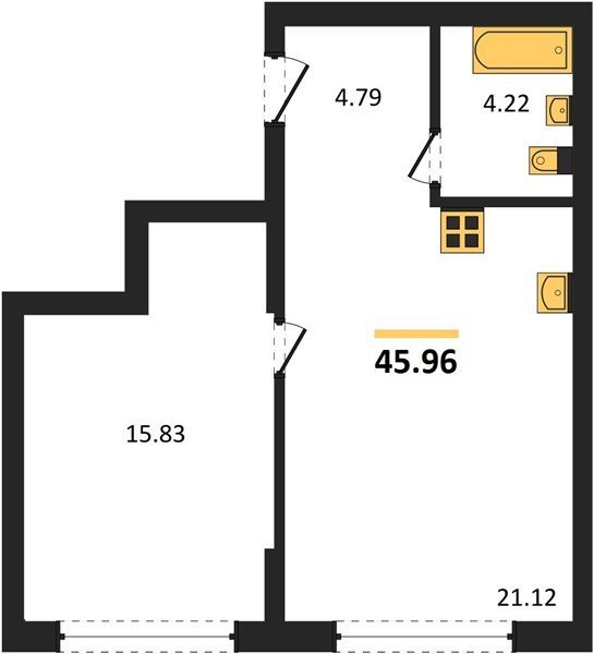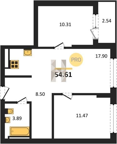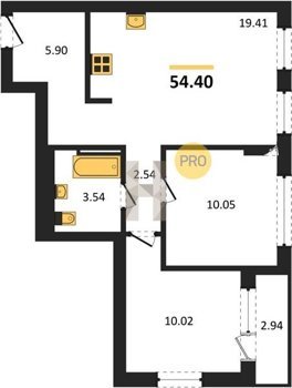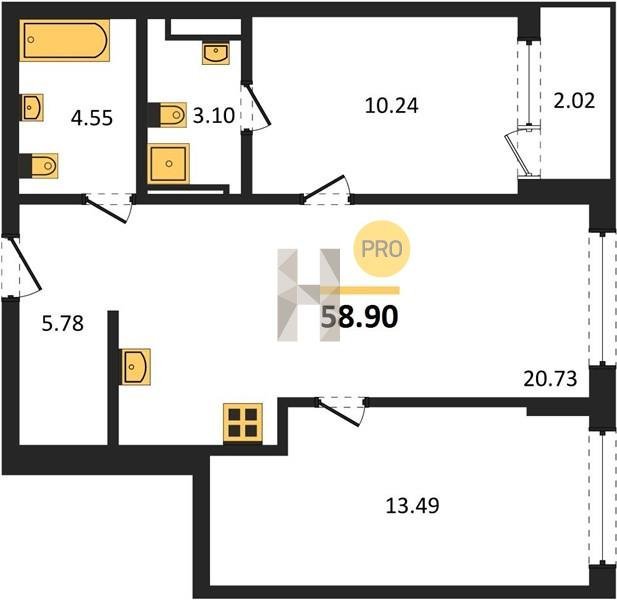 Площадь от 49.6 м2