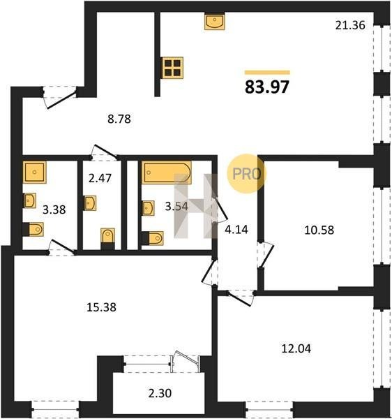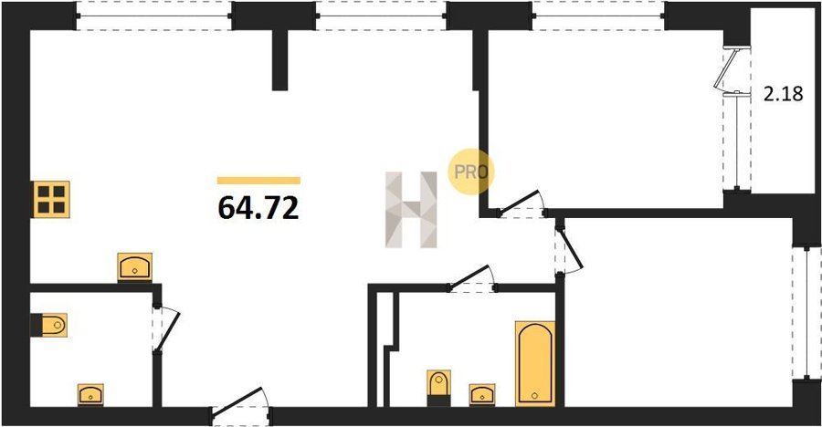 Площадь от 64.72 м2