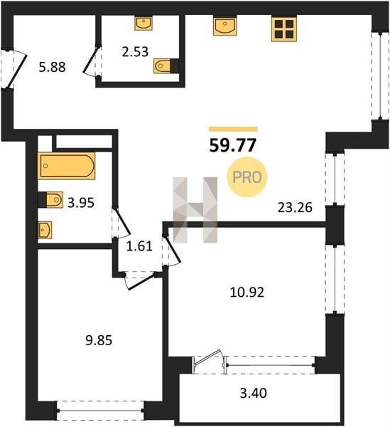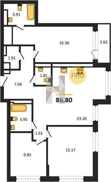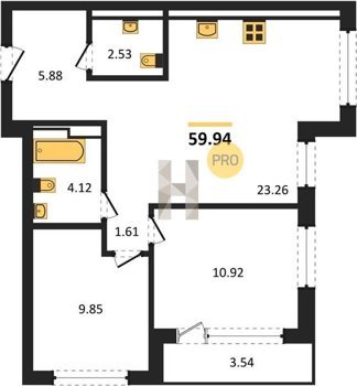 Площадь от 23.2 м2