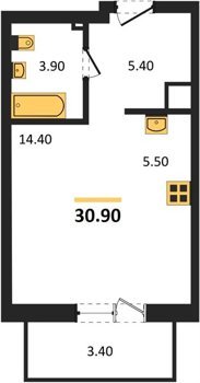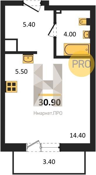 Площадь от 27.3 м2