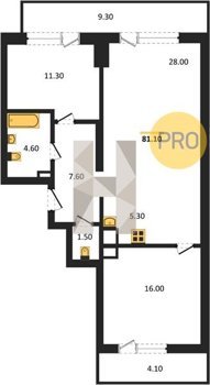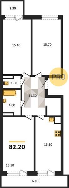 Площадь от 77.3 м2