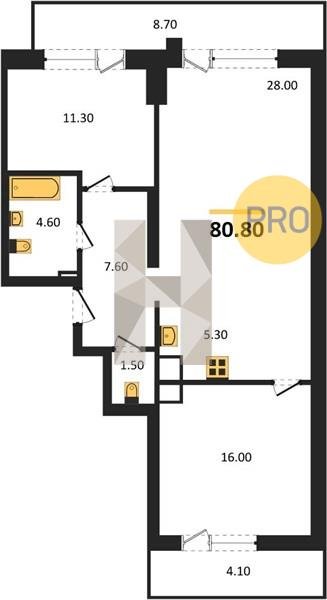 Площадь от 60.3 м2