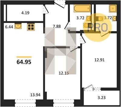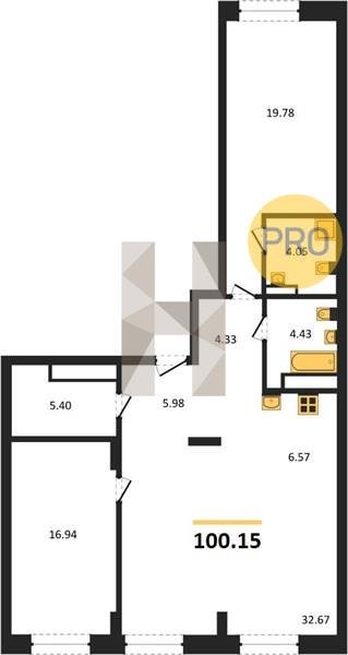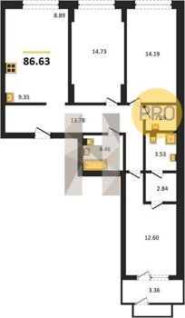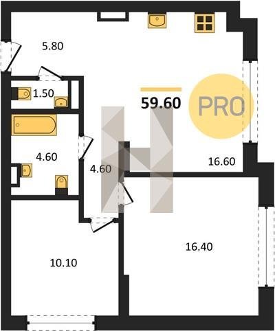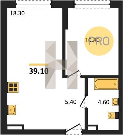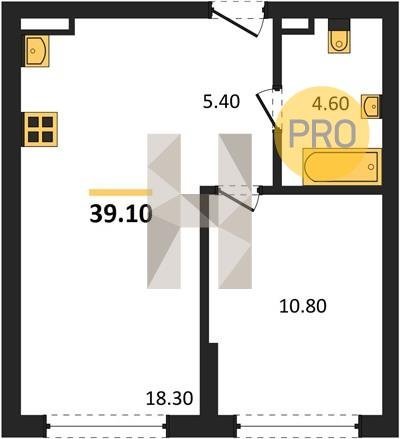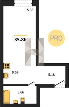 Площадь от 34.35 м2