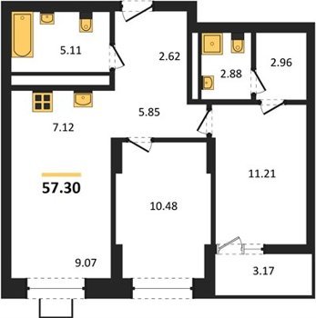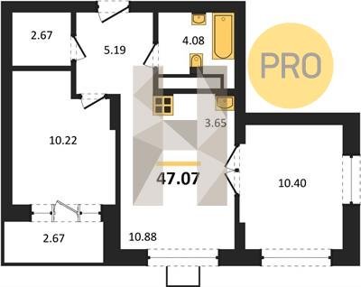 Площадь от 46.93 м2