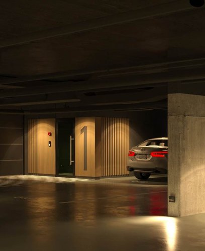 Огороженная территория дворов, парковки вынесены за периметр двора. Видеонаблюдение, ландшафтное озеленение, ночная подсветка.