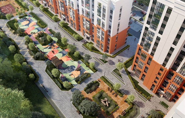 Комплекс согласно проекту состоит из группы многоквартирных жилых домов высотой до 17 этажей. У домов комплекса общая территория в формате «без машин» с игровыми площадками для детей всех возрастов, также площадками для отдыха и занятий спортом. Вокруг комплекса предусмотрены открытые общественные стоянки.
