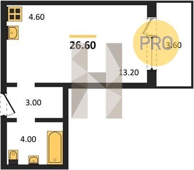 Площадь от 26.6 м2