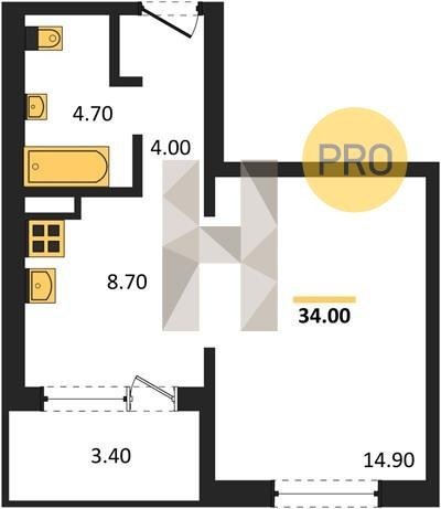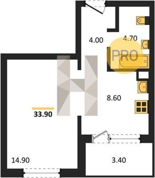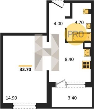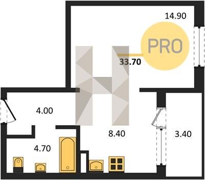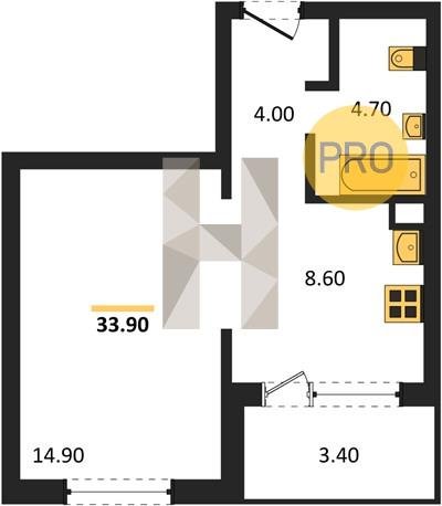 Площадь от 33.7 м2