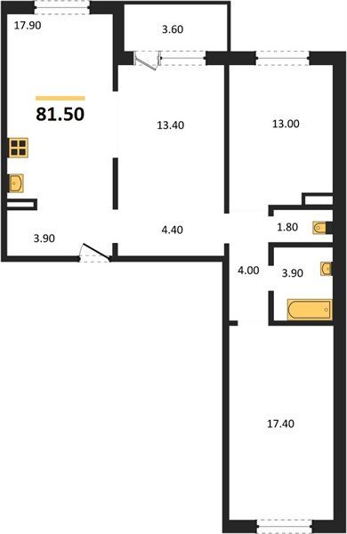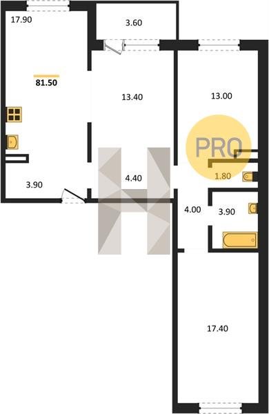 Площадь от 81.2 м2
